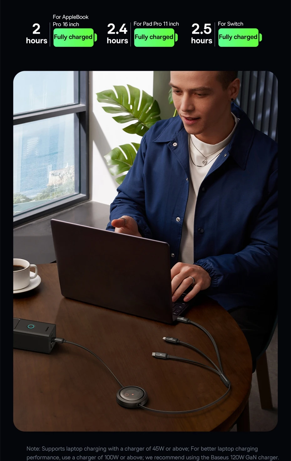 3. PD 100W fast charging: For laptops, tablets,and smartphones