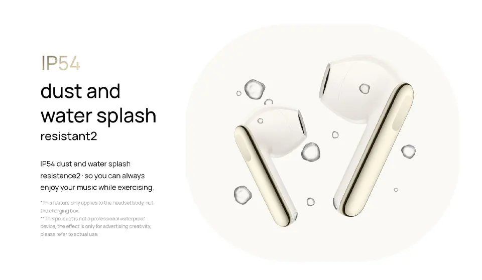 Earphones: support dust and water resistance (IP54)