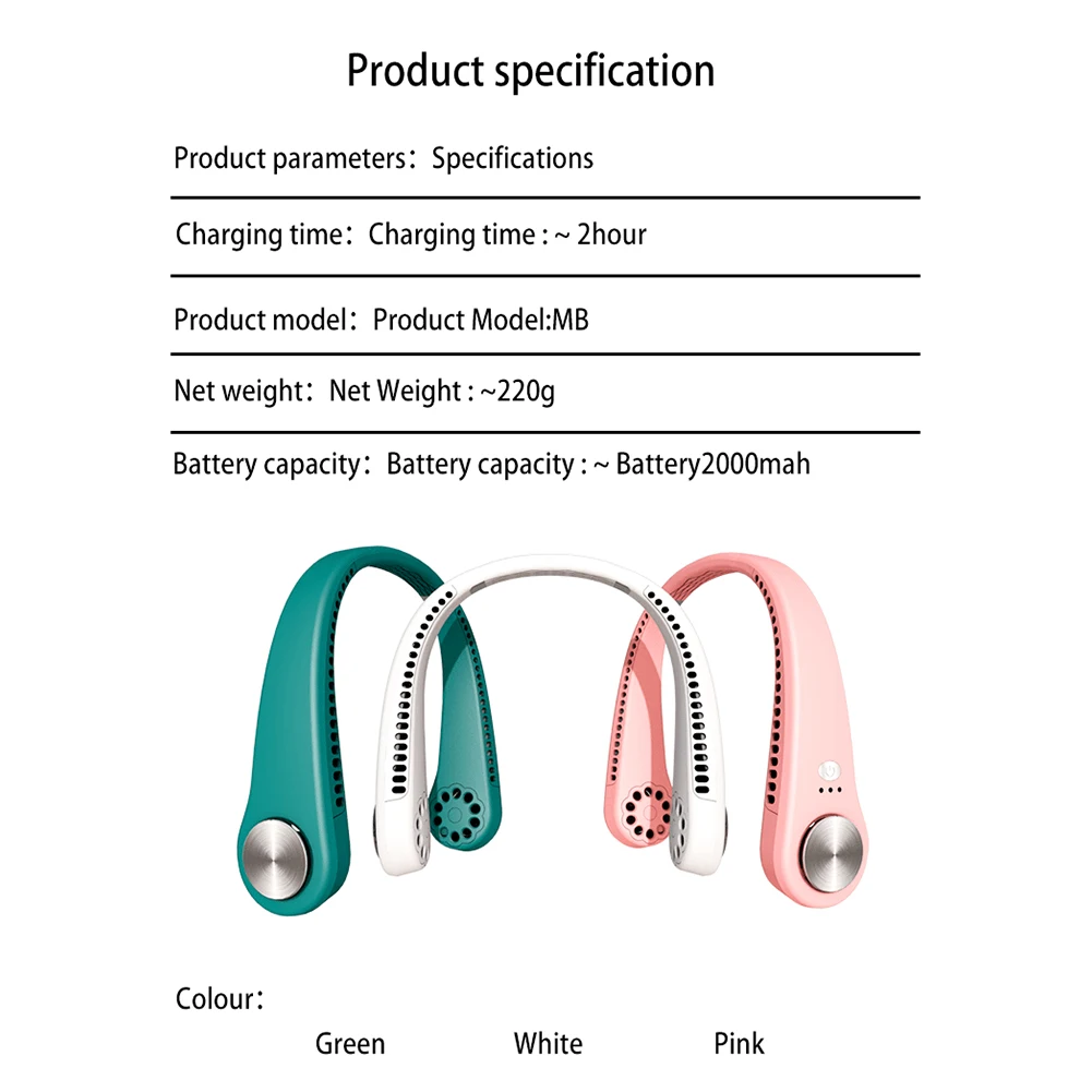 New Stylish Portable Mini Fan Neckband Bladeless Lazy Neck Hanging Cooler Fan USB Rechargeable
