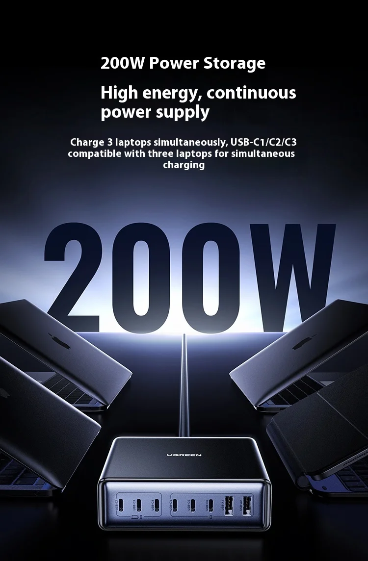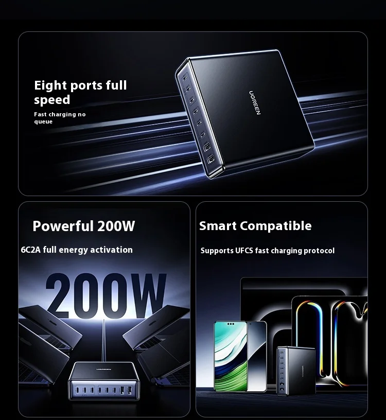 NEW UGREEN Charger Eight-in-one Gallium Nitride 200W Multi Port Fast Charging Desktop Charging Station