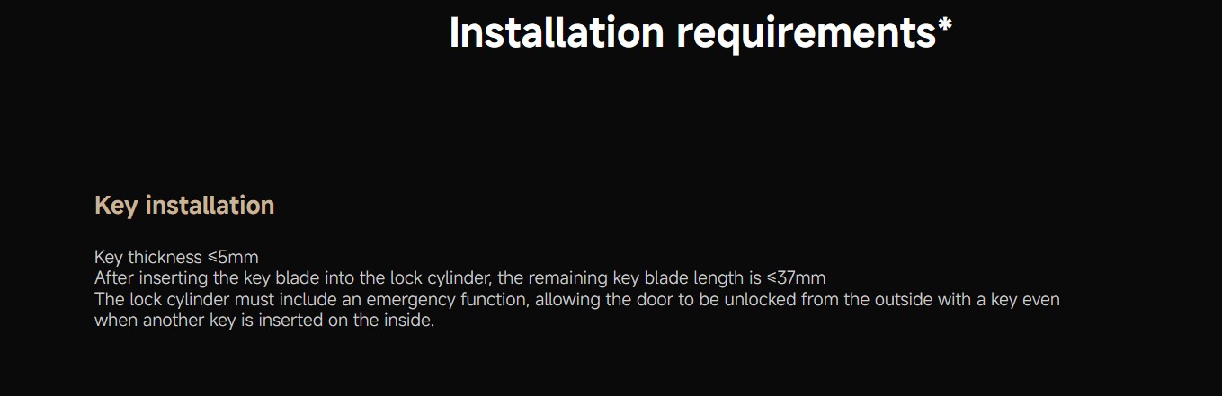 *After the smart lock is installed, it is recommended to keep the mechanical key in a secure outdoor location for emergency use.