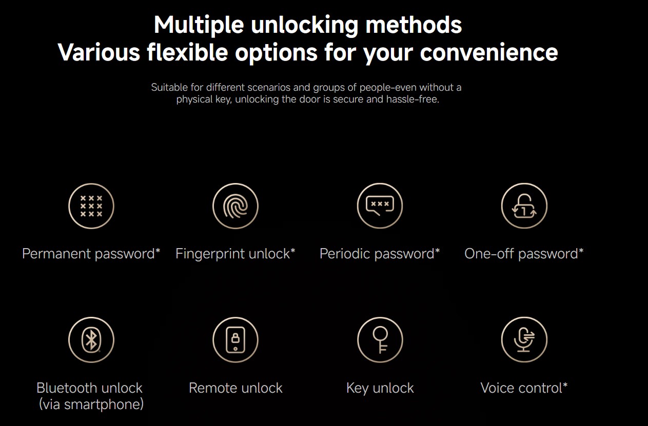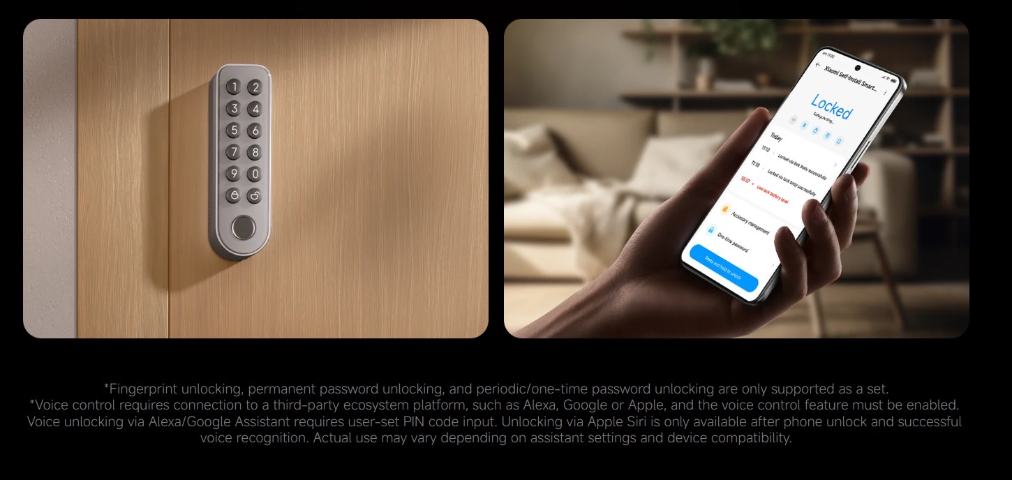 *Voice unlock requires pairing with a third-party smart speaker that supports Matter. For an optimal user experience, it is recommended to use devices bound through Mi Home.