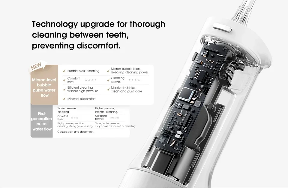Technology upgrade for thoroughcleaning between teeth.preventing discomfort.