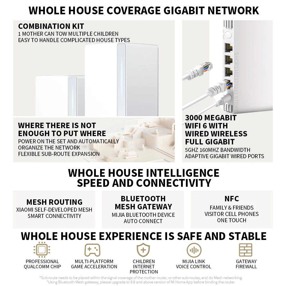 -Xiaomi Whole House Router provides 1 mother and 1 child distributed network access,